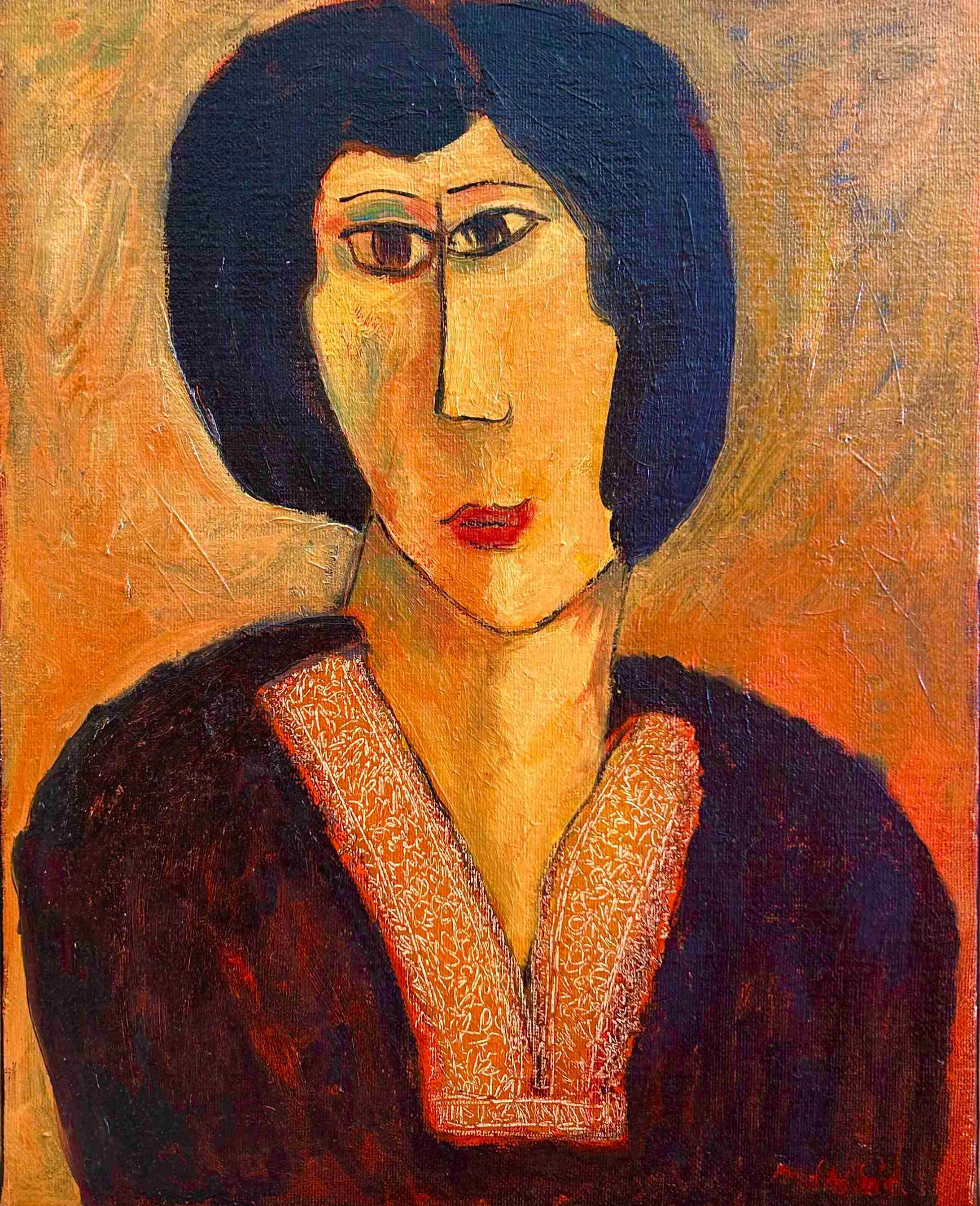fait des tentatives de cubisme léger, d'une déformation de visage dans