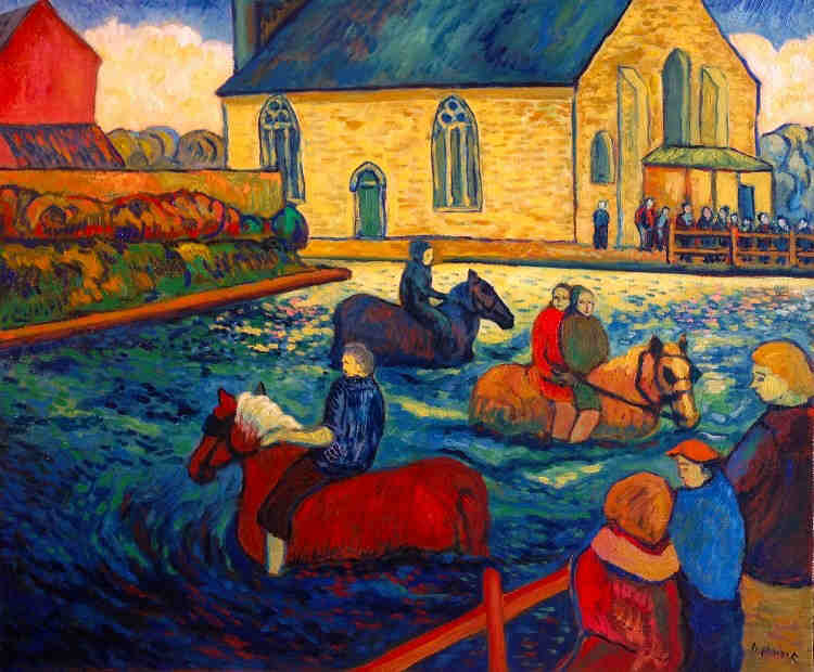 baignade des chevaux à Goudelin |